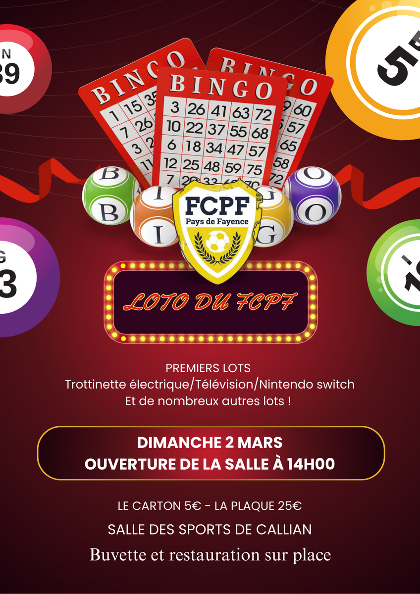 Le dimanche 02 mars 2025 de 14h à 18h Lieu : salle de sports de Callian 83440 CALLIAN
